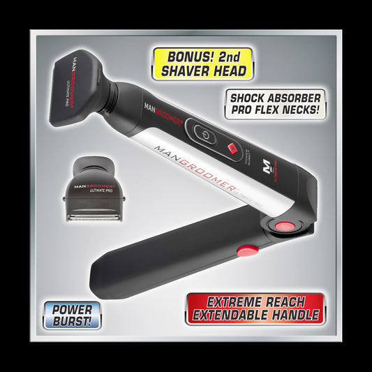 MANGROOMER - ULTIMATE PRO Back Shaver with 2 Shock Absorber Flex Heads, Power Hinge, Extreme Reach Handle and Power Burst