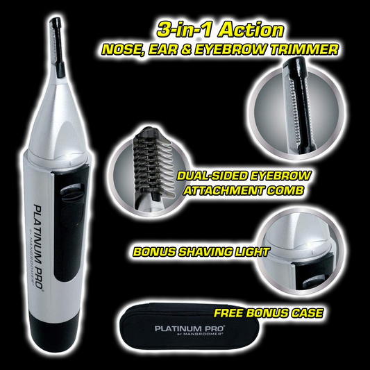 PLATINUM PRO by MANGROOMER - New Advanced Nose Trimmer, Ear Hair Trimmer and Eyebrow Trimmer with Bonus Light and Exclusive Storage Case!