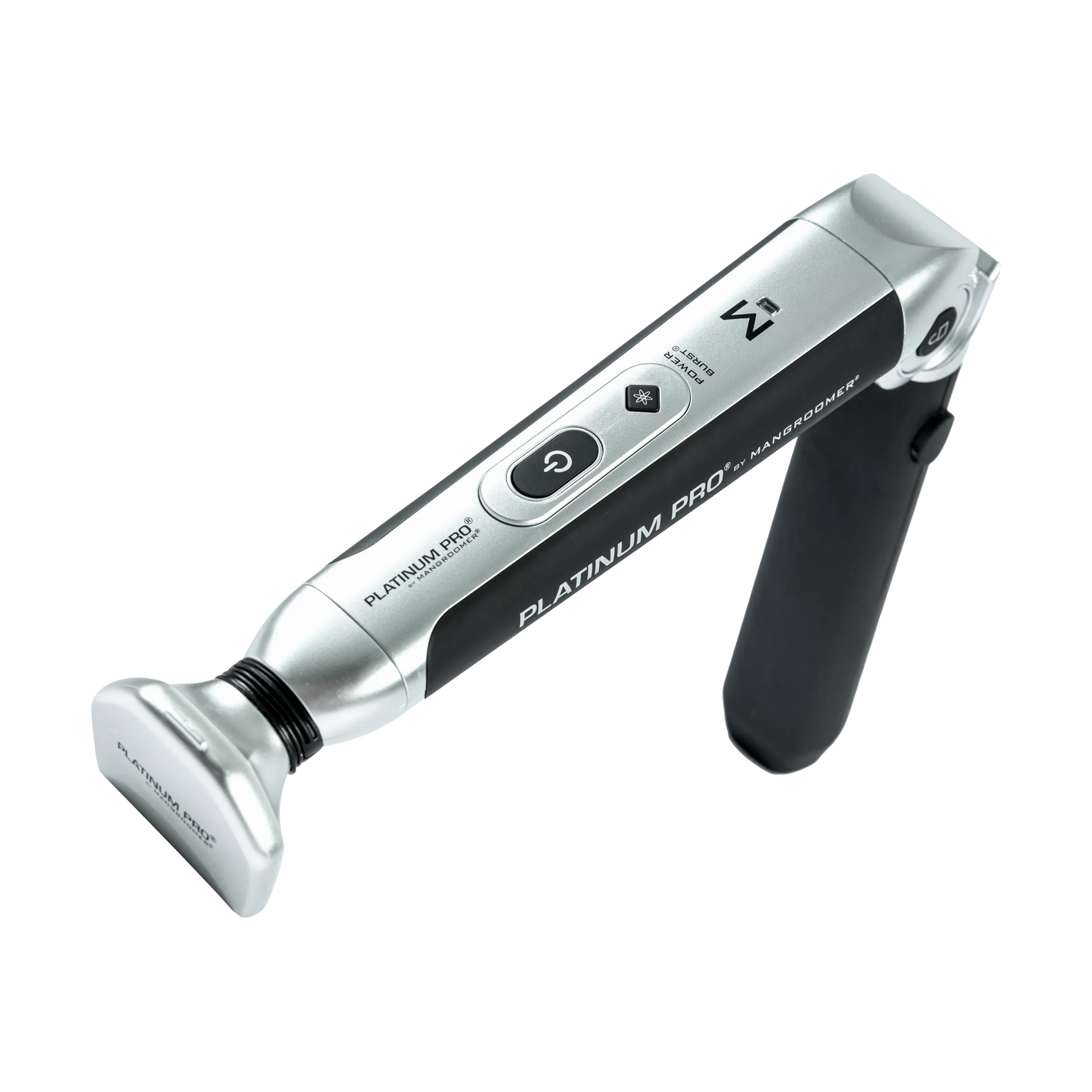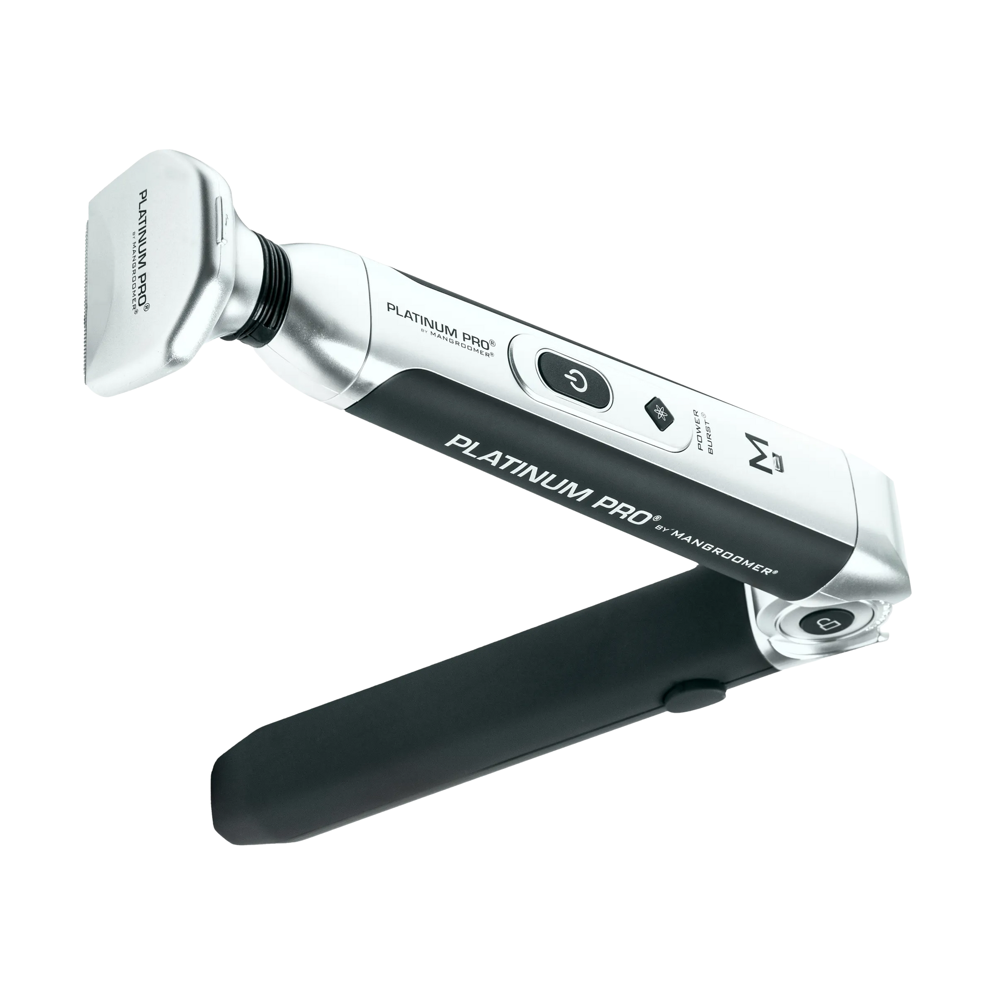- No water or shaving cream needed, just the PLATINUM PRO by MANGROOMER Back Hair Shaver.